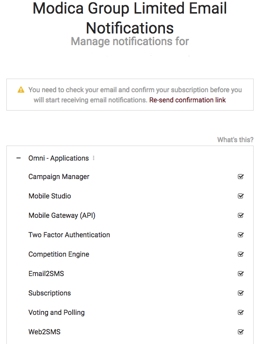 • There will also be a subscription confirmation email sent to the nominated email address.  If this does not come through you can re-send the email via the link on the manage notifications page
